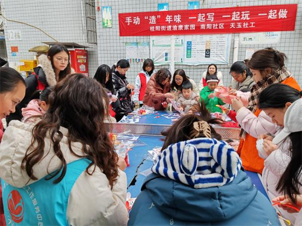 2月3日,天玉社工在南阳社区电力新村小区开展了“手动造年味 一起写、一起玩、一起做”社区活动,活动邀请了南阳社区居家精神障碍患者及电力新村小区的老人与儿童共同参与。