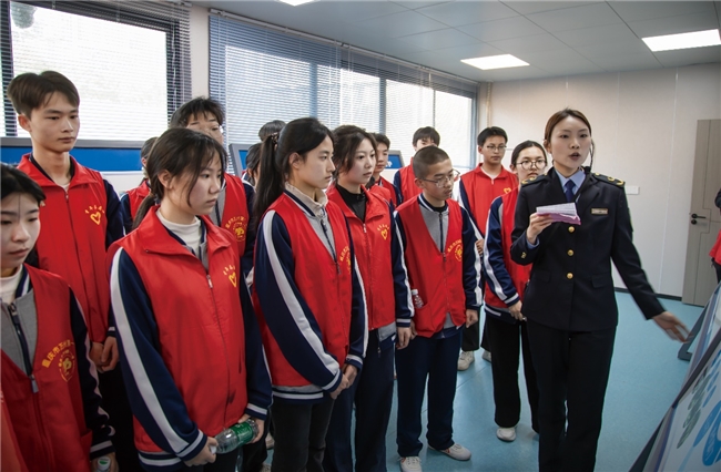在渔政执法人员与护渔队员的引导下,师生有序参观了中国渔政55199趸船的办公区,了解渔政日常执法流程。随后,大家走进渔政指挥调度中心,通过实时监控画面学习长江禁渔政策、非法捕捞识别及水域巡护等知识,亲身体验科技赋能下的立体化监管体系。